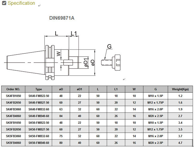 BT/FMB FACE MILL ARB
